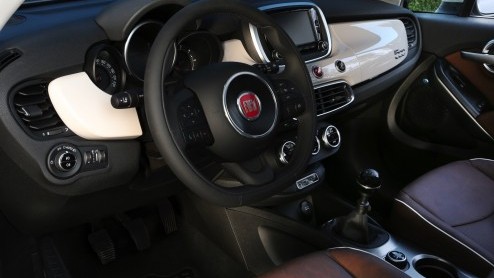 Ook als je instapt heb je niet het idee dat je in een compacte auto stapt. Alles voelt zwaar en degelijk aan. De materialen zijn mooi en het hele interieur lijkt goed doordacht. Op het dashboard zit ook weer het typerende ‘500’ logo. De dikke pookknop uit de 500 is ook terug, maar daar houden de gelijkenissen eigenlijk ook op. De 500X heeft een afgevlakt stuur, met duidelijke knoppen. Het is lekker dik en ligt goed in de hand. De plekken voor de duim zijn alleen net iets te hoog geplaatst, waardoor je het stuur al snel met één hand gaat bedienen. De knoppen zijn ook anders dan bij de 500 en 500L, maar zijn logischer. Eigenlijk zou Fiat dit stuur in alle modellen mogen monteren, zoveel goed werkt de bediening. De cruise control en audiobediening zitten op een logische plek en ook de knopjes voelen goed aan. Hier is echt aandacht aan besteed, dat voel je.