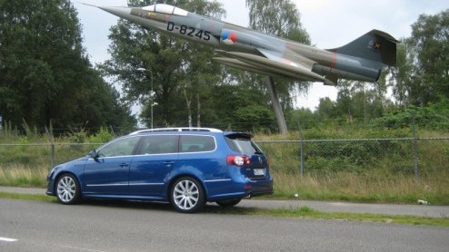 ‘U komt voor de R36?’ krijg ik te horen wanneer ik klokslag negen uur de showroom binnenloop bij de importeur. Een meer concrete aanduiding heeft deze top-Passat niet nodig. Immers, de R32 is het codewoord voor een supersportieve Golf, en andere R-modellen heeft VW nog niet in het gamma. Die titel krijgt een model niet zomaar toebedeeld. Veel vermogen, 4Motion vierwielaandrijving met een sportonderstel, een uitlaatsound die er echt mag wezen en het nodige aan spoilers en skirts voor de uiterlijke vertoning. Nee, je ziet en hoort direct dat dit niet zomaar ‘een Passat’ is. De verlaging, blauwe remklauwen, de achterspoiler, rondom aangedikte wielkastranden en groot lichtmetaal laten niets aan de verbeelding over. De felblauwe lakkleur met de chromen grille aan de voorzijde én de dubbele verchroomde uitlaatpijpen achteraan zetten deze snelle gezinscombi nog eens extra op de voorgrond. Jazeker, we rijden de Variant, eigenlijk nog leuker. Want wie verwacht deze Wolf(sburger) in een – toegegeven, sportieve - gezinsverpakking?